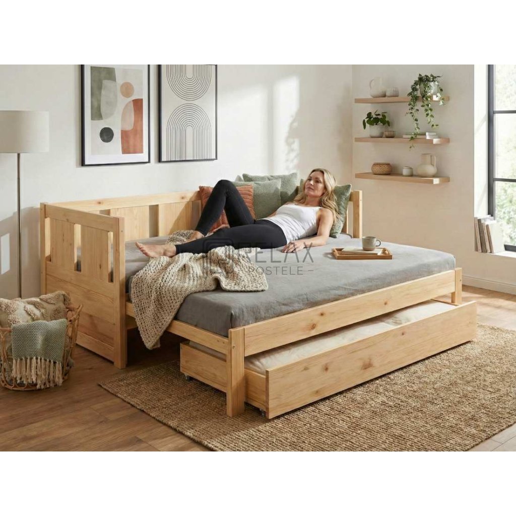 Rozkládací postel s úložným prostorem Relax - masiv borovice
