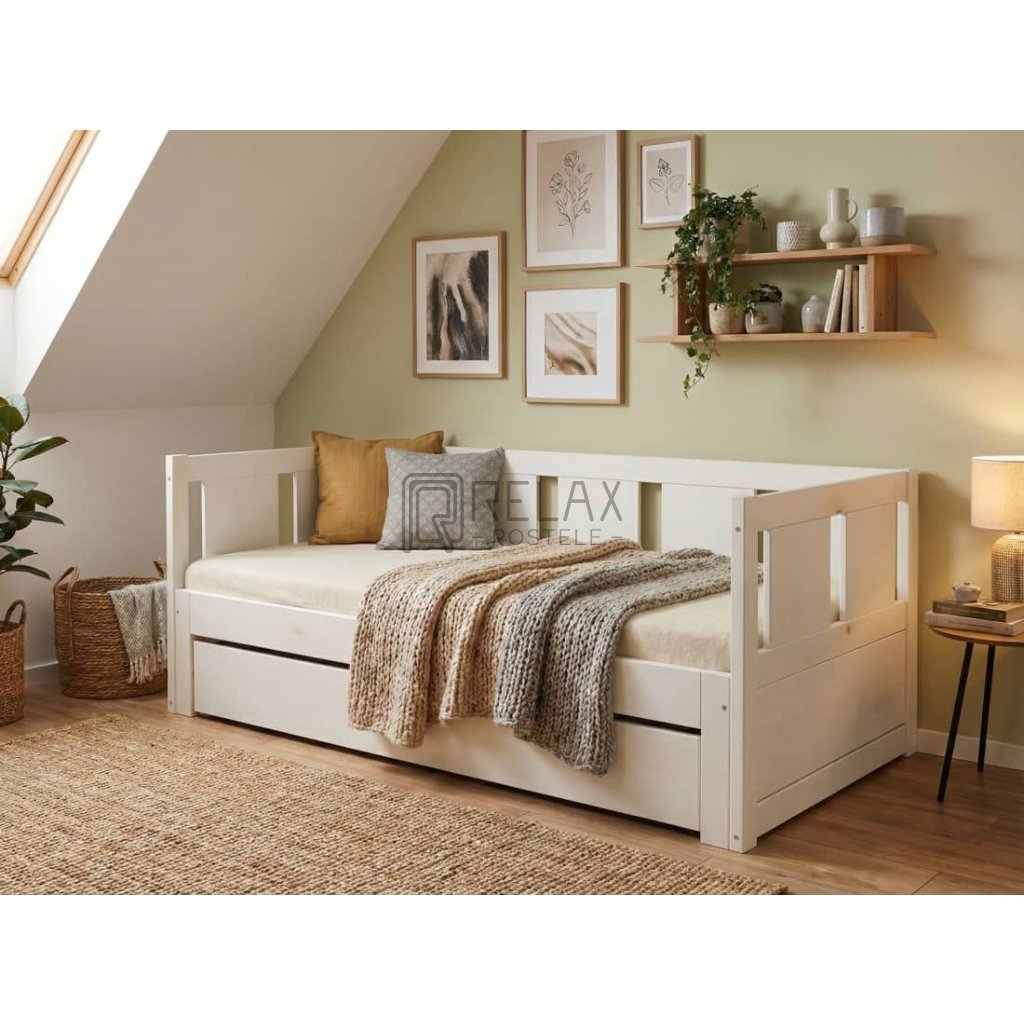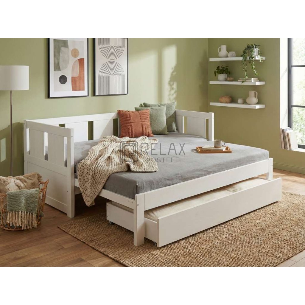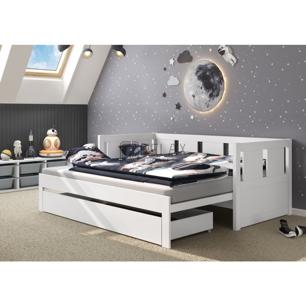 Bílá rozkládací postel relax s úložným prostorem - masiv