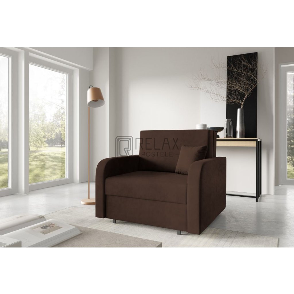 Moderní hnědé křeslo, rozklad na lůžko 196x80 cm