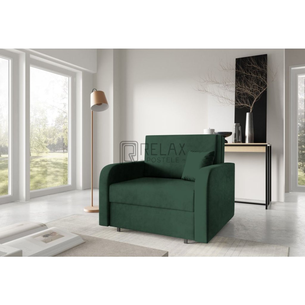 Křeslo s úložným prostorem, lůžko 196x80 cm - zelené