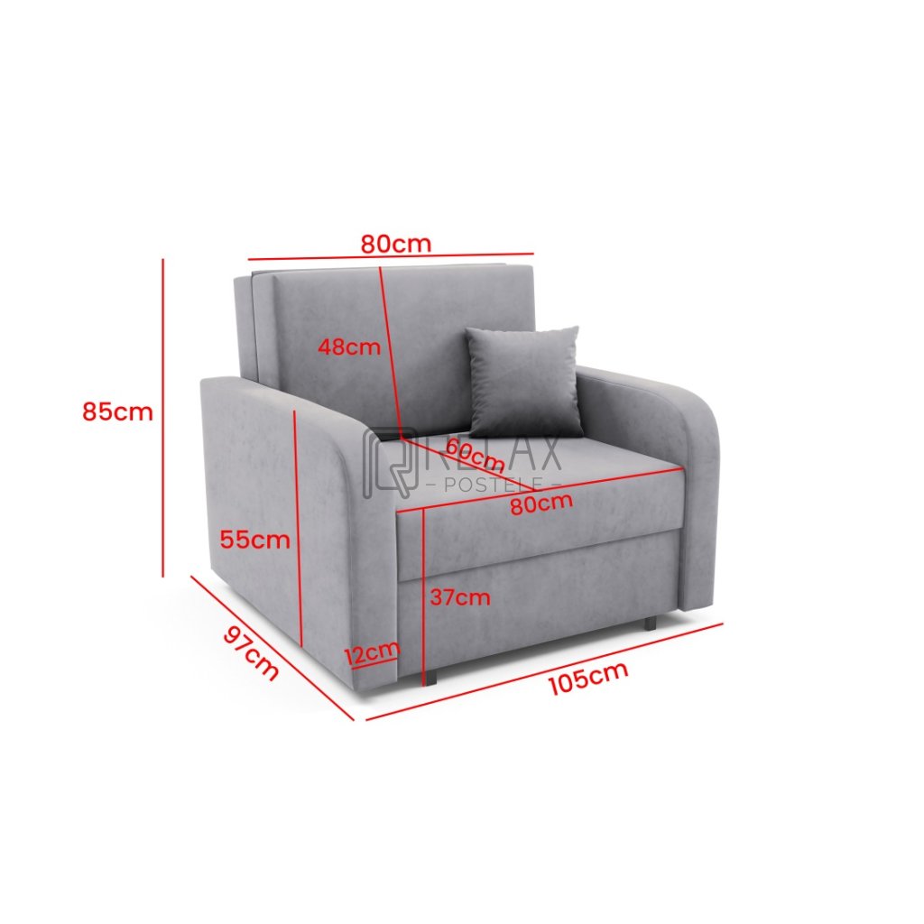 Šířka 105 cm, hloubka 97 cm, výška 85 cm, výška sedu 37 cm, hloubka sedu 60 cm - Funkce spaní