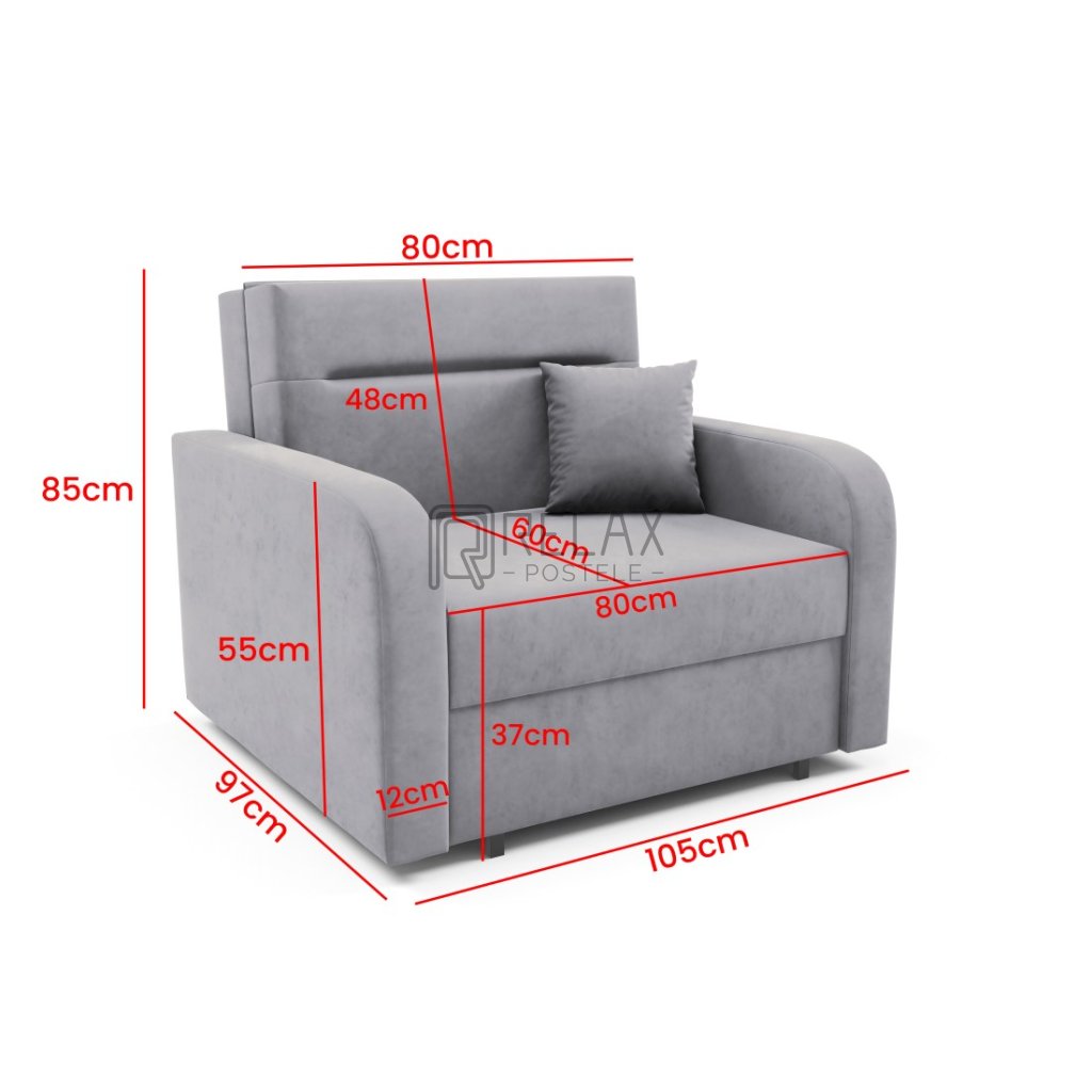 Šířka 105 cm, hloubka 97 cm, výška 85 cm, výška sedu 37 cm, hloubka sedu 60 cm - Funkce spaní