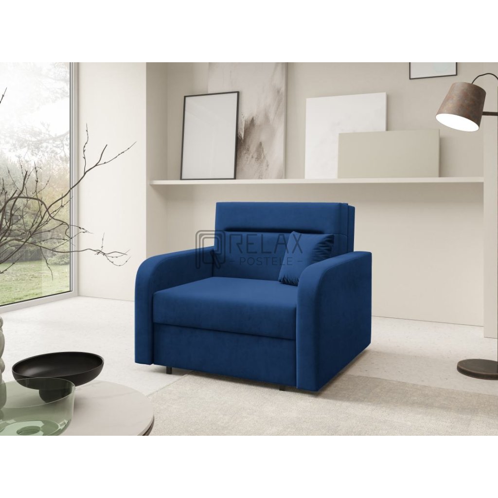 Modré křeslo Hela – rozkládací, s úložným prostorem