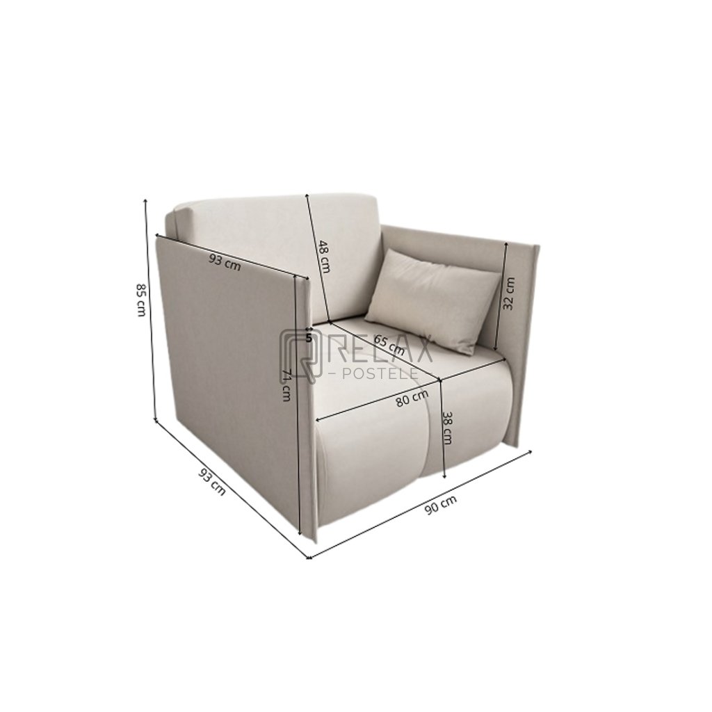 Šířka 90 cm, hloubka 93 cm, výška 85 cm - Funkce spaní