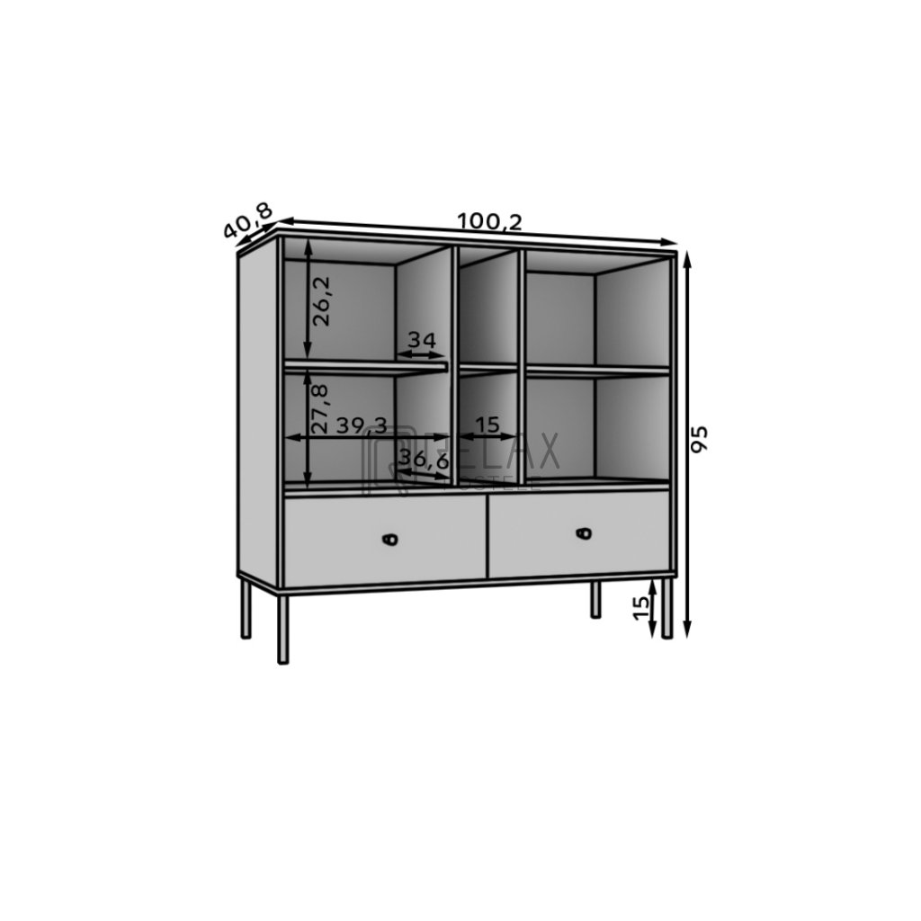 Disponuje 2 šuplíky, 2 dvířky a 2 policemi, které poskytují dostatek úložného prostoru pro vaše věci.