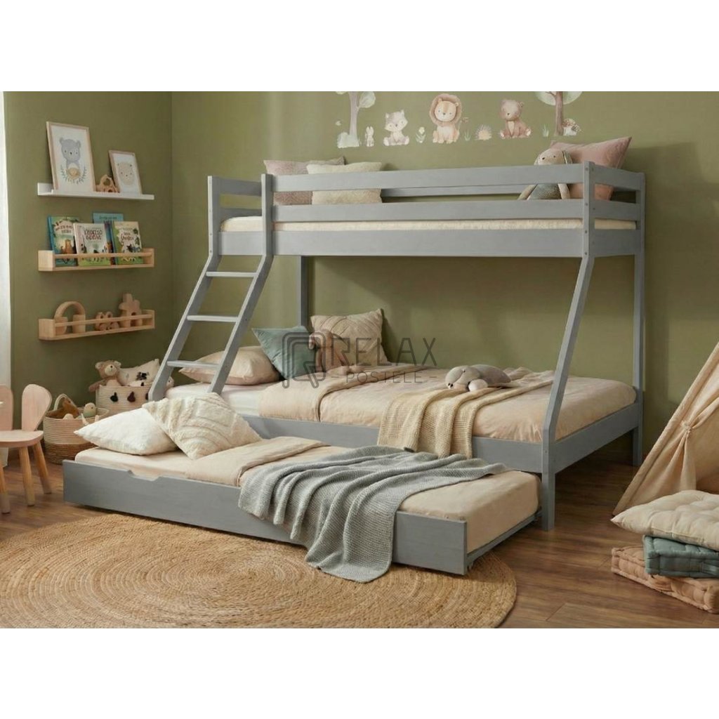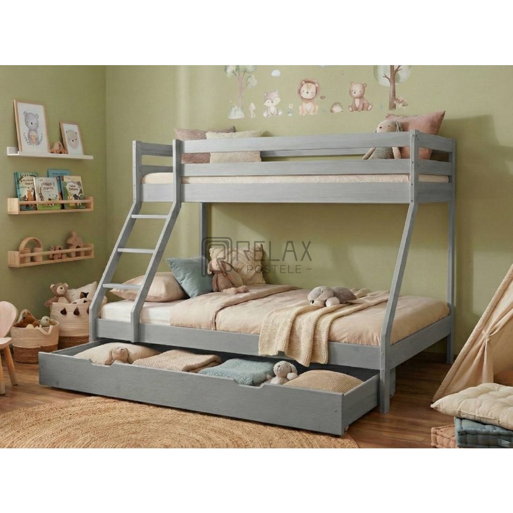 Šedá patrová postel Mike + matrace + rošty zdarma