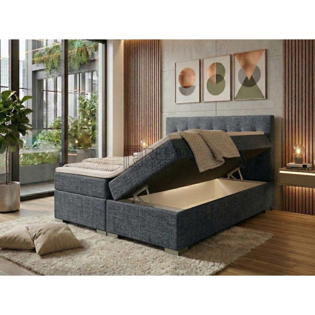 Boxspring s úložným prostorem s vysokou výškou ložné plochy, čalouněná kvalitní silnou látkou od českého výrobce.