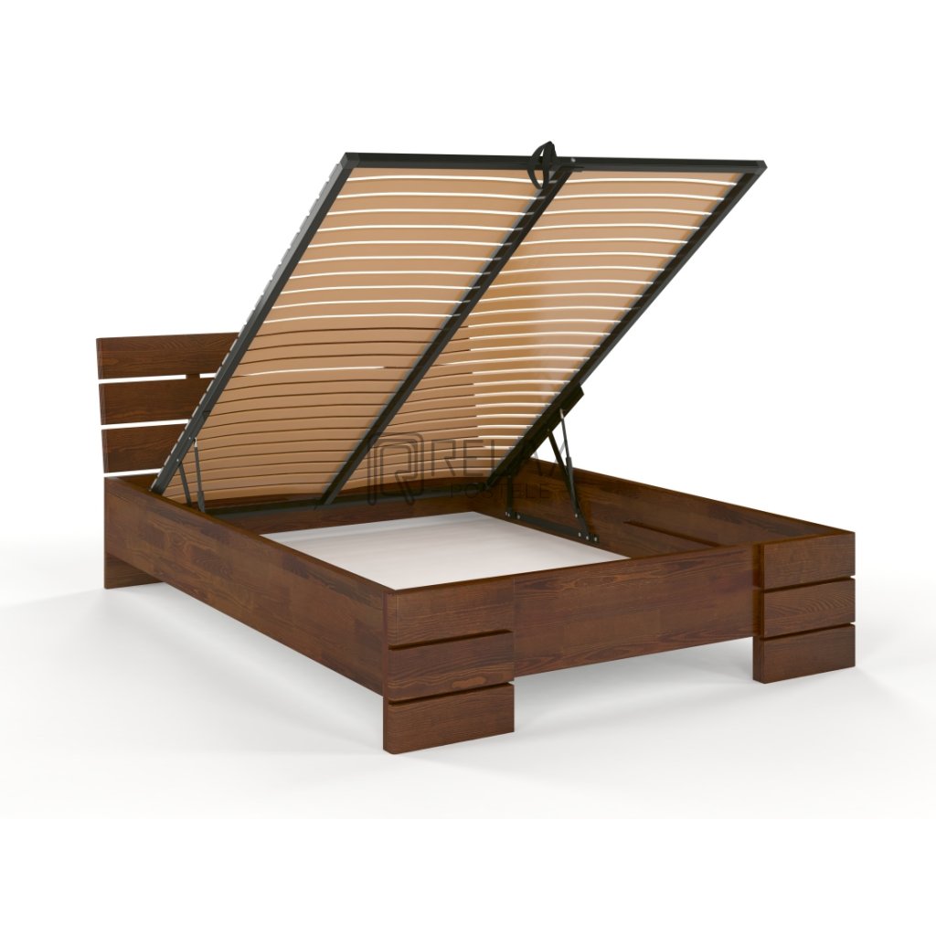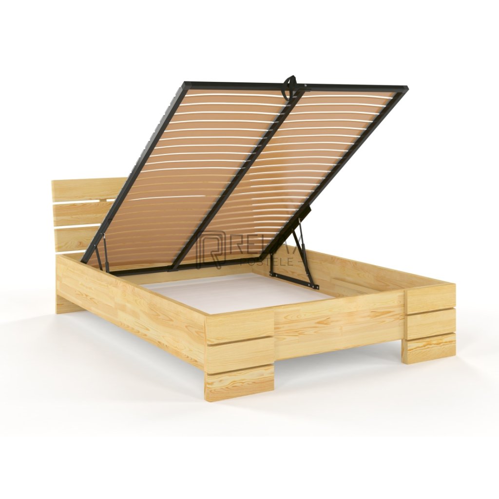 Prodloužená postel z masivu borovice Sandemo s úložným prostorem