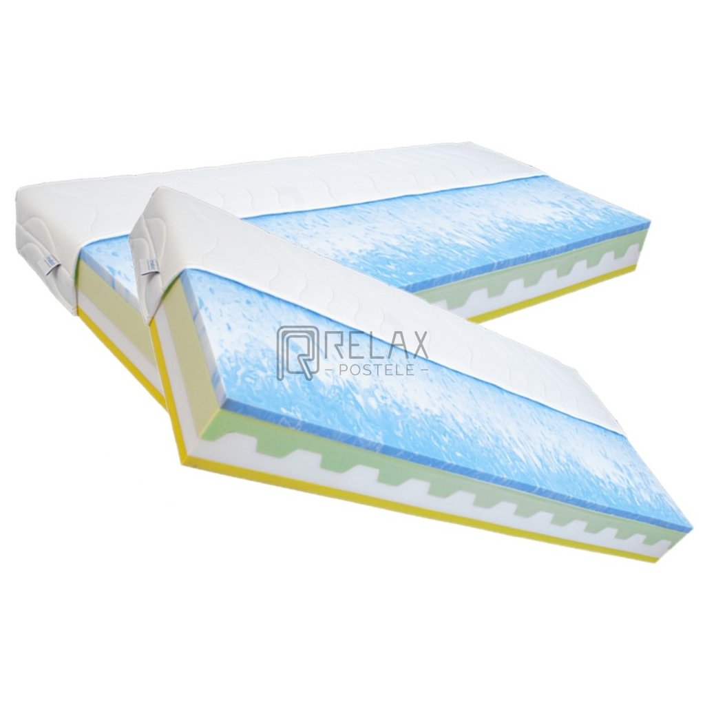 Jednotlivé vrchní vrstvy (modrá a žlutá pěna) můžete libovolně měnit z jedné strany matrace na druhou nebo dát dvě vrchní vrstvy na sebe v různých kombinacích a nastavit si tak tuhost matrace přesně podle vašich požadavků.