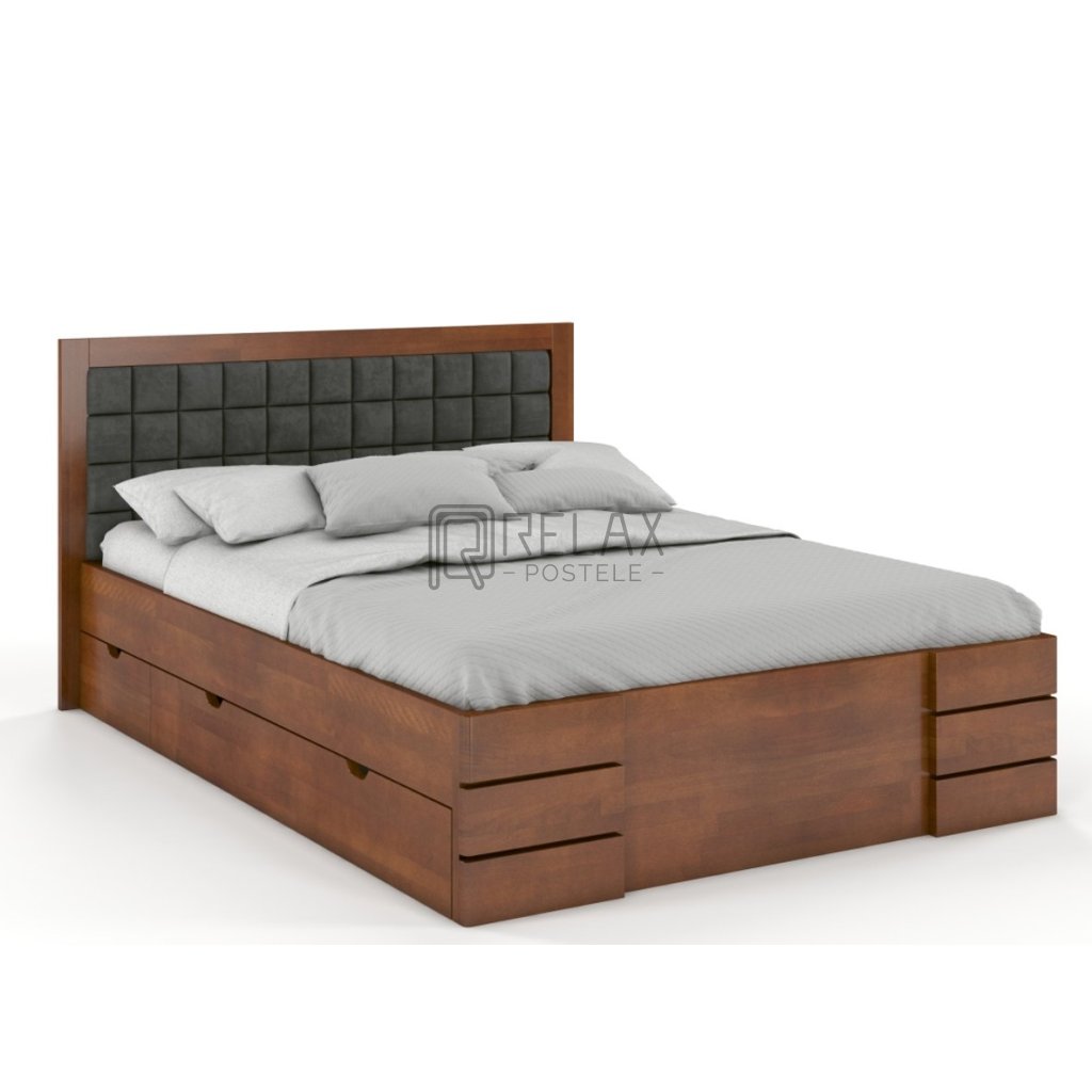 Manželská zvýšená postel s úložným prostorem ze dvou stran, masiv buk - cink.