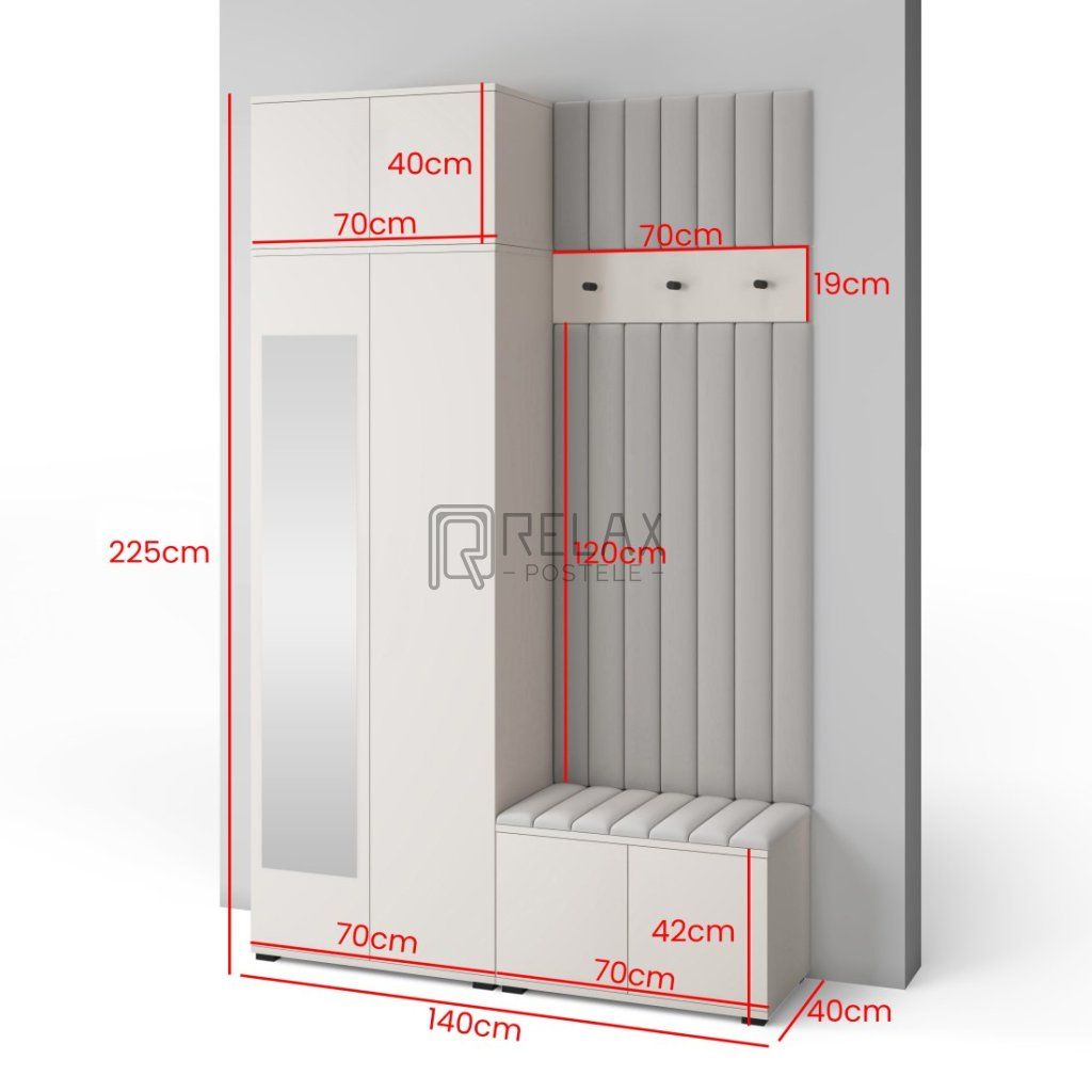 | Celková délka podél zdi: | 140 cm |