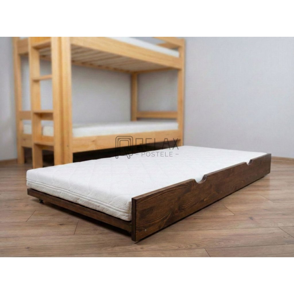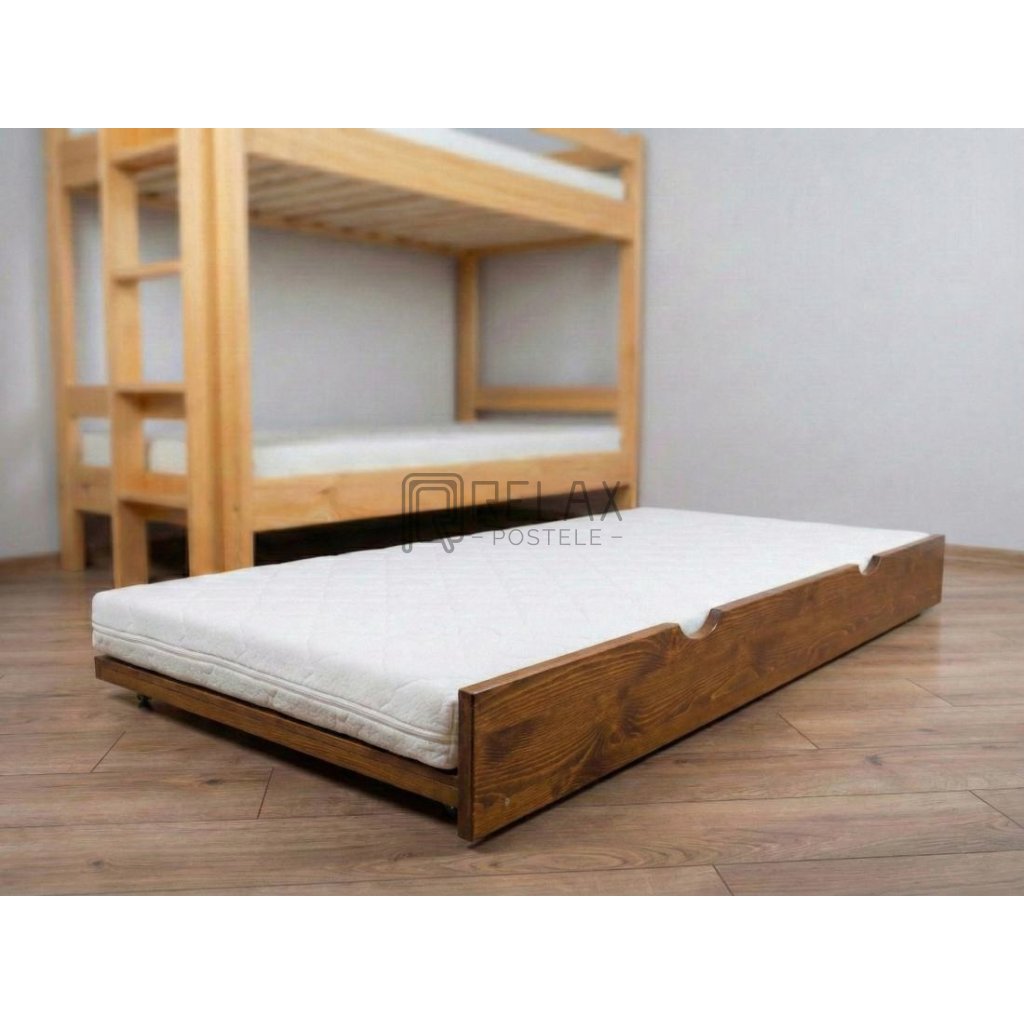 Přistýlka je navržená pro matraci o rozměru 90×200 cm s výškou 10–12 cm, aby se pohodlně vešla pod postel a zároveň nabídla komfort při spánku. Vzhled si můžete přizpůsobit interiéru díky možnosti moření.