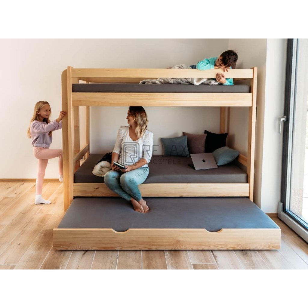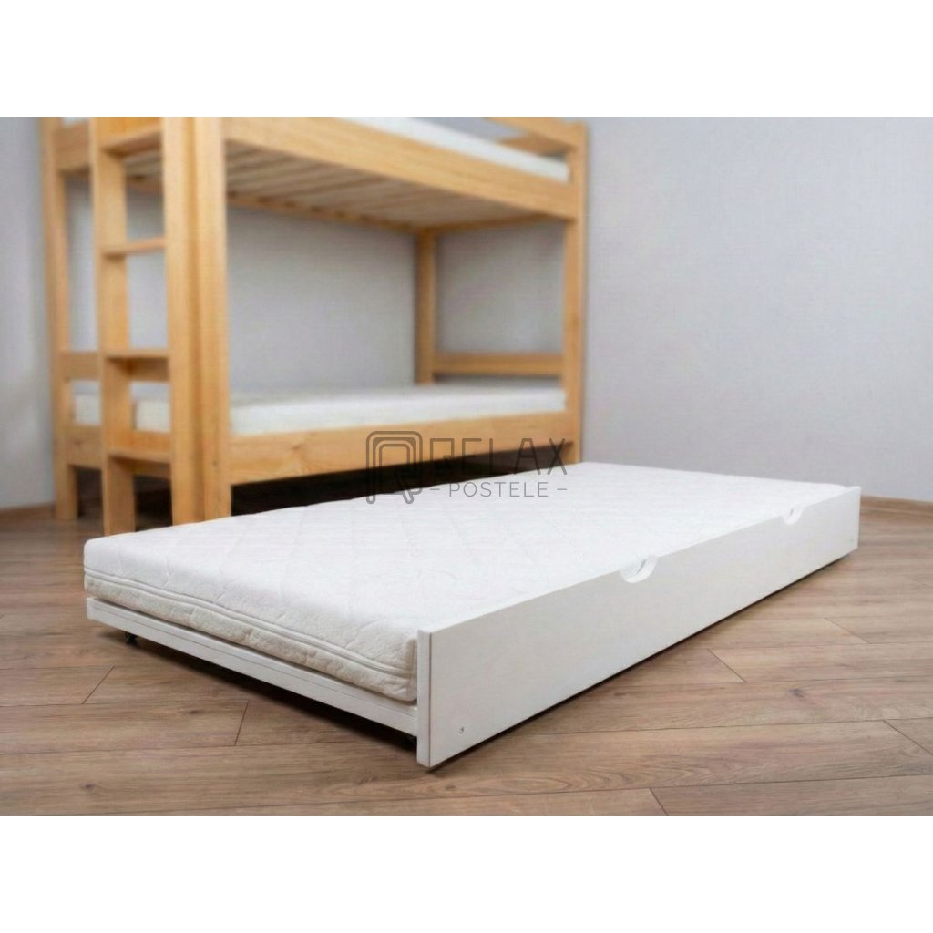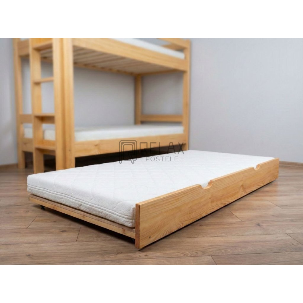 Přistýlka pod postel Max je jednoduchá a poctivá přistýlka z masivu borovice, která se snadno zasune pod postel a během chvíle vytvoří plnohodnotné lůžko pro hosty nebo děti. Díky kolečkům se s ní dobře manipuluje – vysunutí i zasunutí zvládnete rychle a bez námahy.