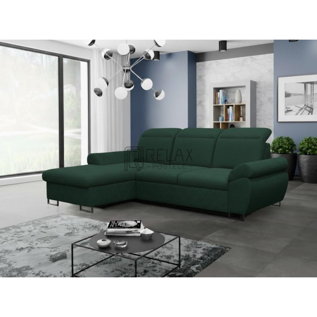 Rozkládací sedací souprava do L - Santana - zelená