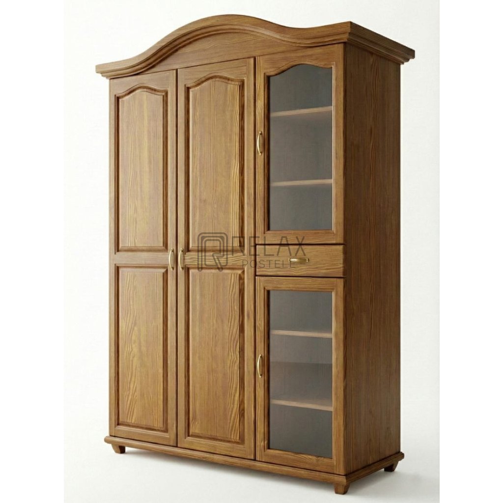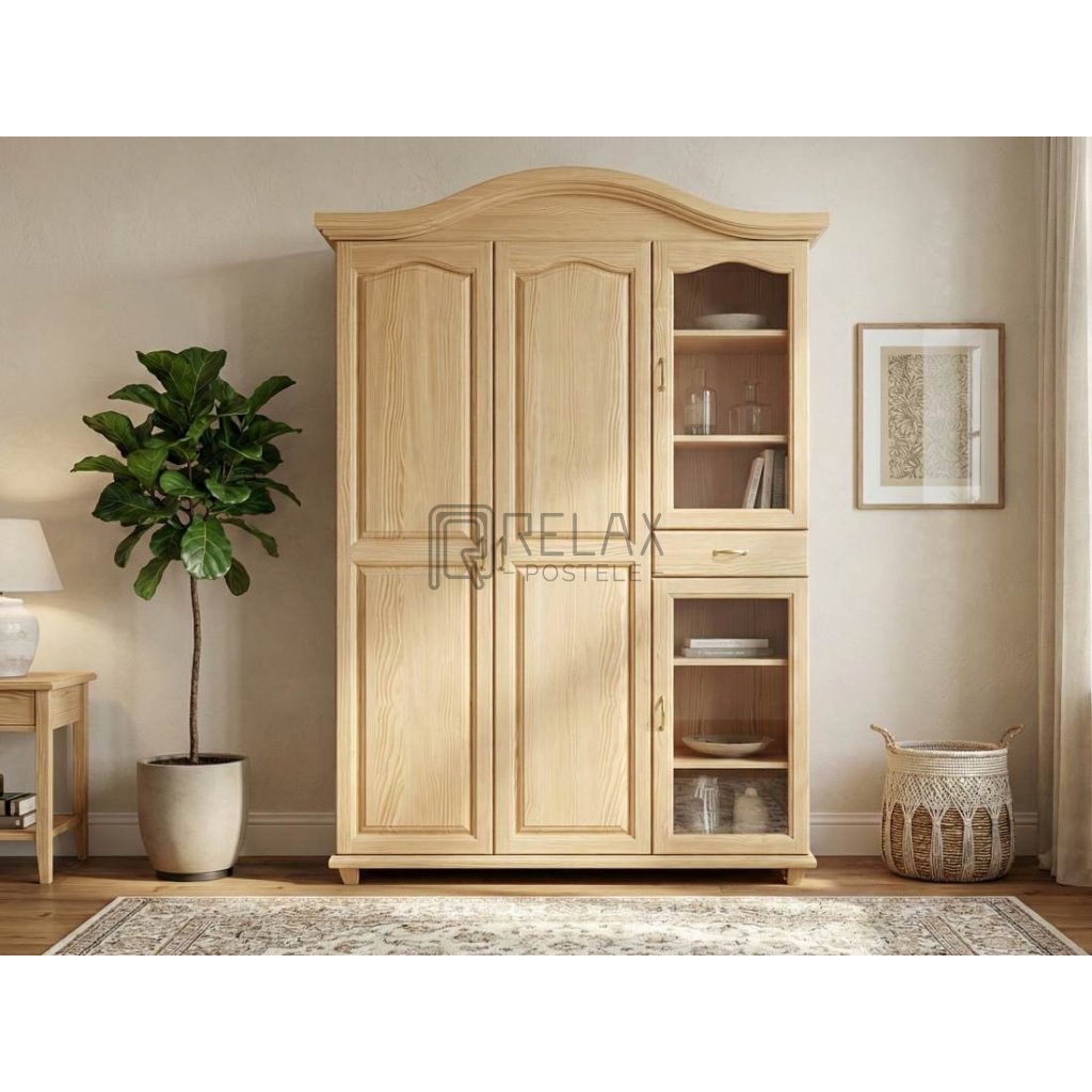 Prosklená šatní skříň Ludvík 4D1S pološatní se šuplaty - masiv borovice