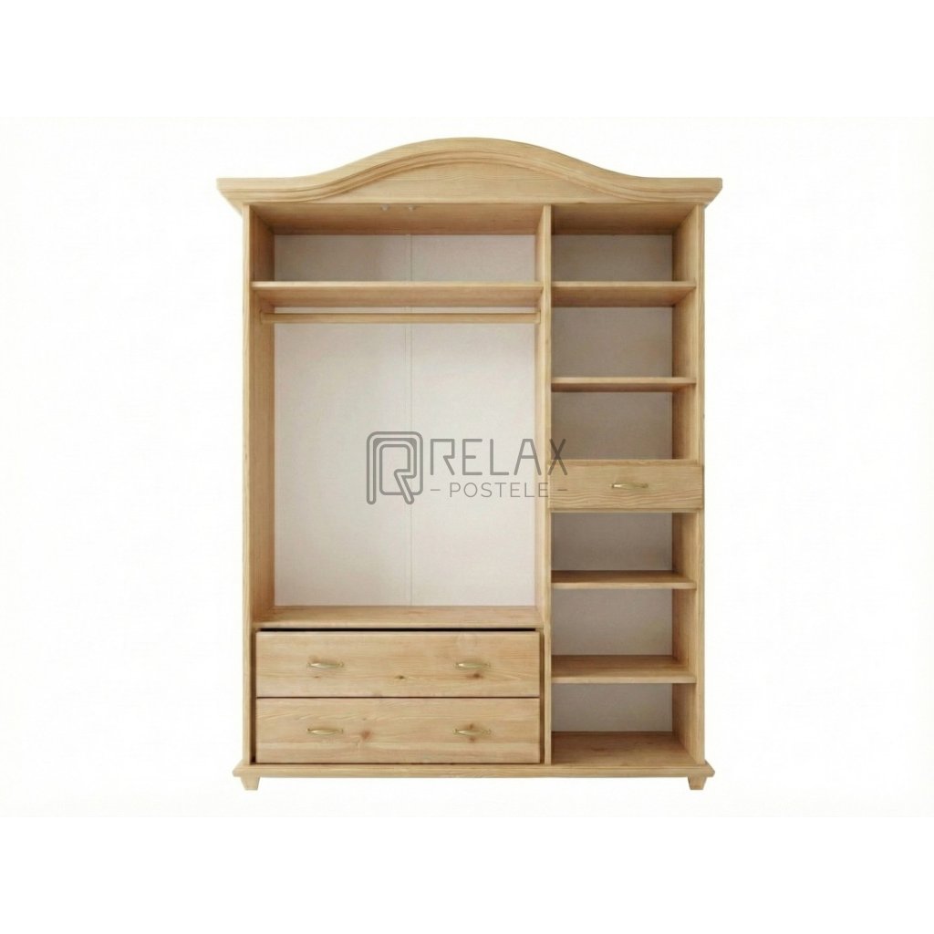 Šatní skříň Ludvík 3D - pološatní se šuplaty - masiv borovice