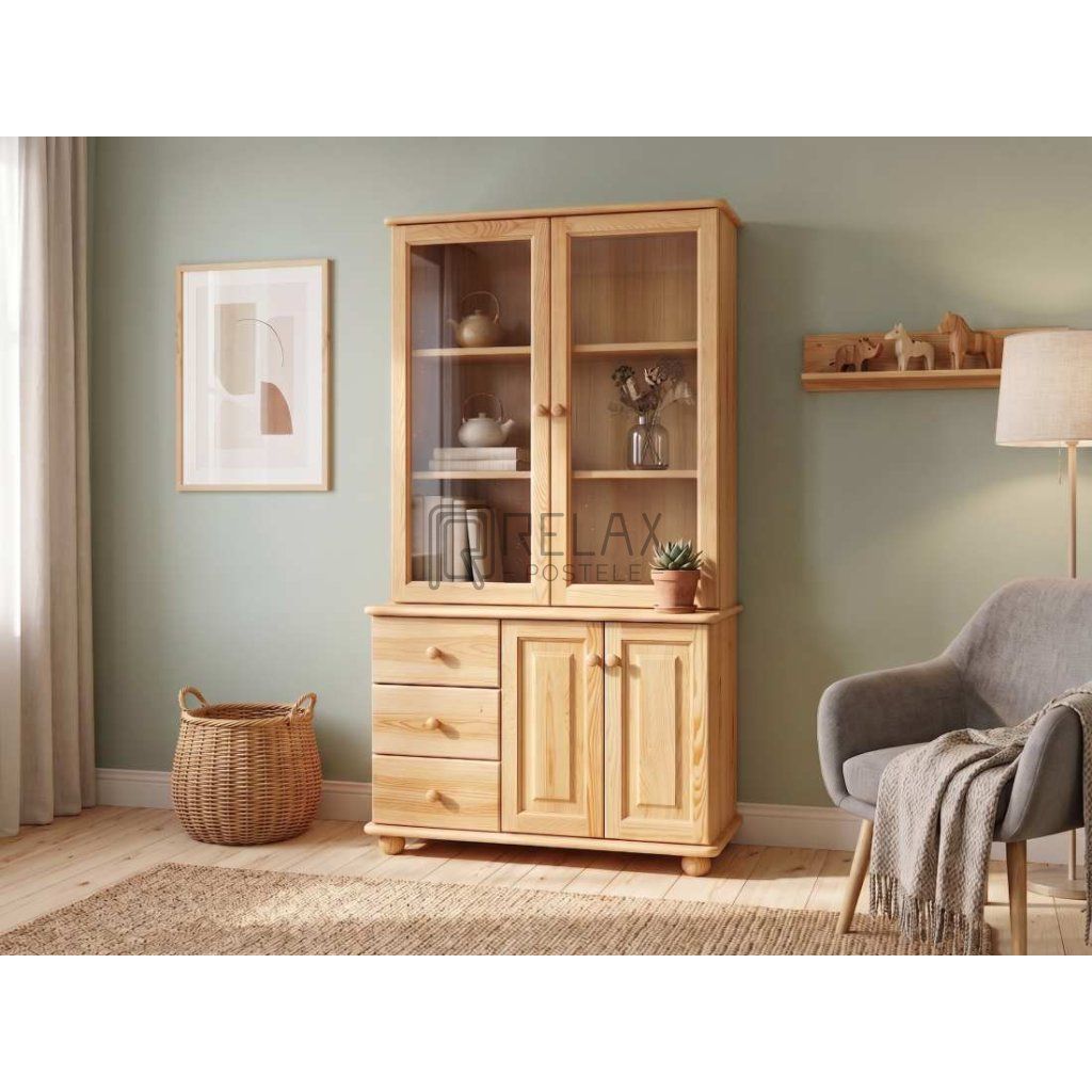 Prosklená skříň 43 - masiv borovice