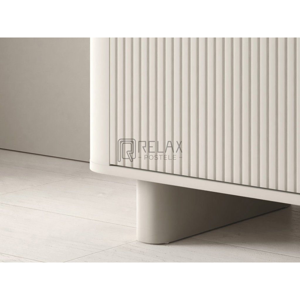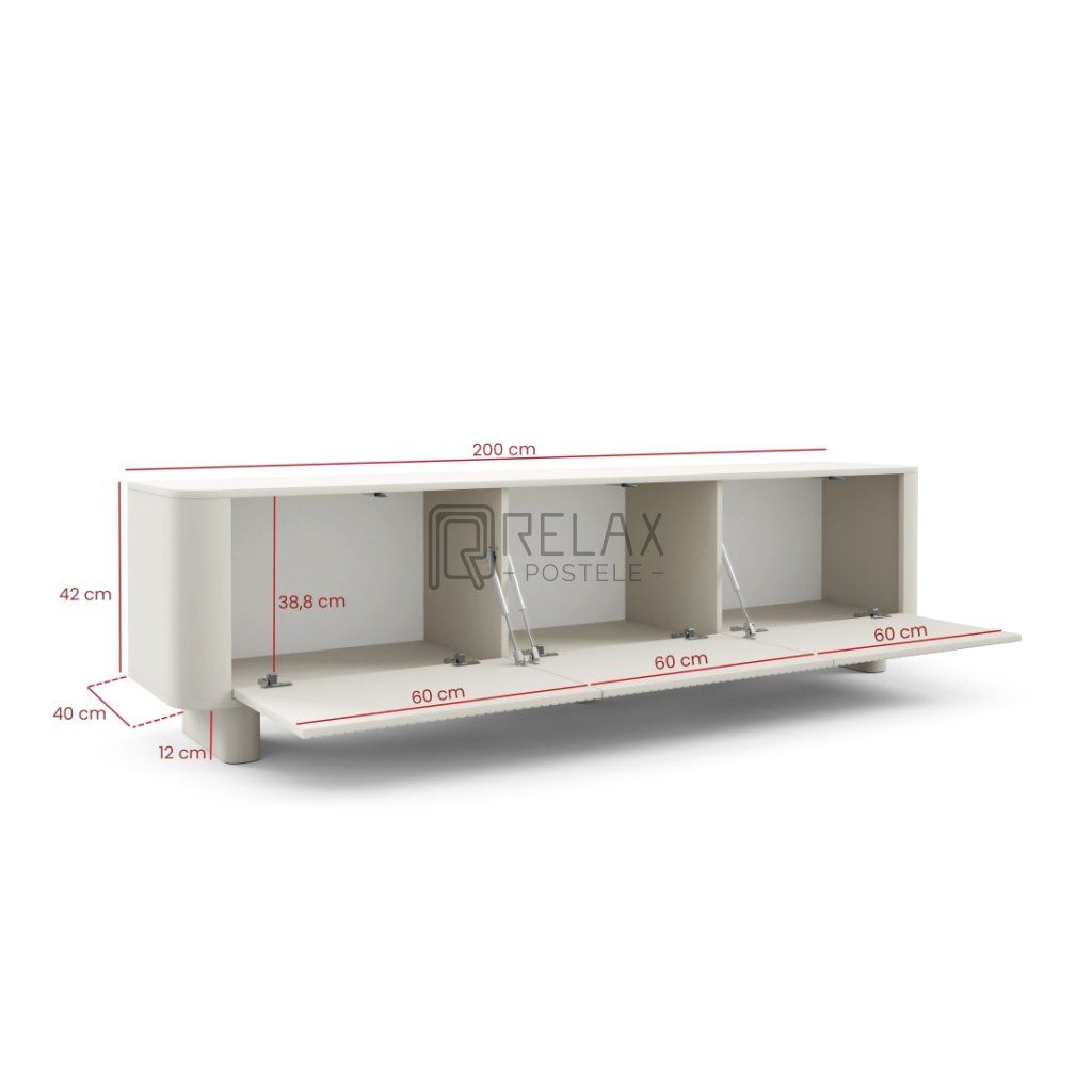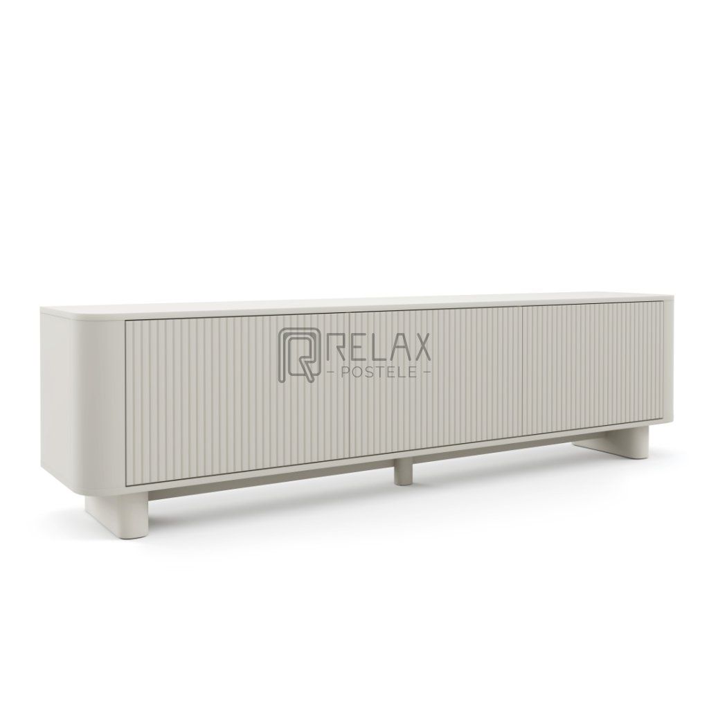 Moderní TV stolek Trenza v elegantním odstínu kašmír zaujme čistým designem, zaoblenými liniemi a stylovými lamelovými dvířky. Kombinuje funkčnost s estetikou a nabízí praktický úložný prostor i prémiové zpracování vhodné do současných interiérů. Délka 200 cm poskytuje dostatek místa pro televizi i dekorace, zatímco vnitřní členění usnadňuje organizaci elektroniky a doplňků. Možnost montáže na nožičky nebo zavěšení na stěnu zvyšuje flexibilitu využití v obývacím pokoji.